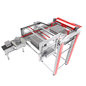 • Paletizační moduly: Flexibilní systémy schopné pracovat s vysokými kapacitami při zachování maximální šetrnosti k produktu.