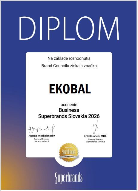 Značka EKOBAL aj v roku 2026 potvrdila svoje výnimočné postavenie a deviatykrát po sebe získala ocenenie Business Superbrands Slovakia. Zlatá pečať je globálne uznávaným symbolom kvality, stability a inovatívneho prístupu k podnikaniu. Výber ocenených značiek je prísne nezávislý a objektívny. O víťazstve rozhodujú ekonomické dáta, prieskum trhu a odborná porota Brand Council; žiadna spoločnosť sa do výberu nemôže nominovať sama. Pre našich obchodných partnerov je tento titul jasným signálom, že spolupracujú s dôveryhodným lídrom. V náročných trhových podmienkach predstavuje Superbrands záruku profesionality a férovosti. Je to náš záväzok naďalej prinášať spoľahlivé riešenia v oblasti balenia, ktoré uľahčujú podnikanie našim zákazníkom.