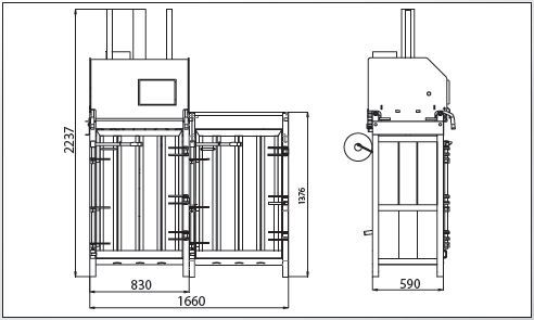 Lisy stabilní konstrukce s pevnou lisovací komorou, na které je uložená posuvná lisovací hlavice. Přítlak je realizován hydraulickým válcem s možností regulace přítlačné sily, což zaručuje dlouhodobou spolehlivost při dosažení vysokého měrného tlaku. Lisovací prostor je plněn z vrchu. Systém předních dveří a vyklápění balíku umožňuje jednoduché vyjmutí zlisovaného balíku z lis. komory. Konstrukce komory umožňuje 2x svázání balíku vázací PE páskou nebo drátem. Lis je koncipován pro možnost rozšíření počtu lisovacích komor při jedné lisovací jednotce (zvýšení kapacity lisu s min. pořizovacími náklady, třídění lis. materiálu).